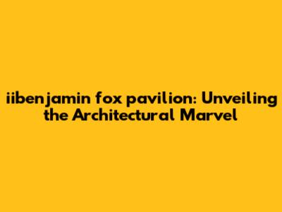 Hey guys! Ever heard of the iibenjamin fox pavilion? If not, you're in for a treat! This article is your ultimate guide to understanding everything about this architectural gem. We'll dive deep into its history, design, features, and why it's such a significant landmark. So, buckle up, and let's explore the world of the iibenjamin fox pavilion together! Seriously, this place is awesome, and I can't wait to share all the cool details.