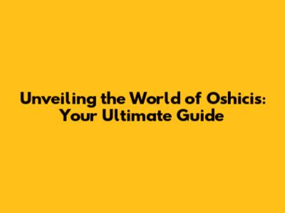 Unveiling The World Of Oshicis: Your Ultimate Guide